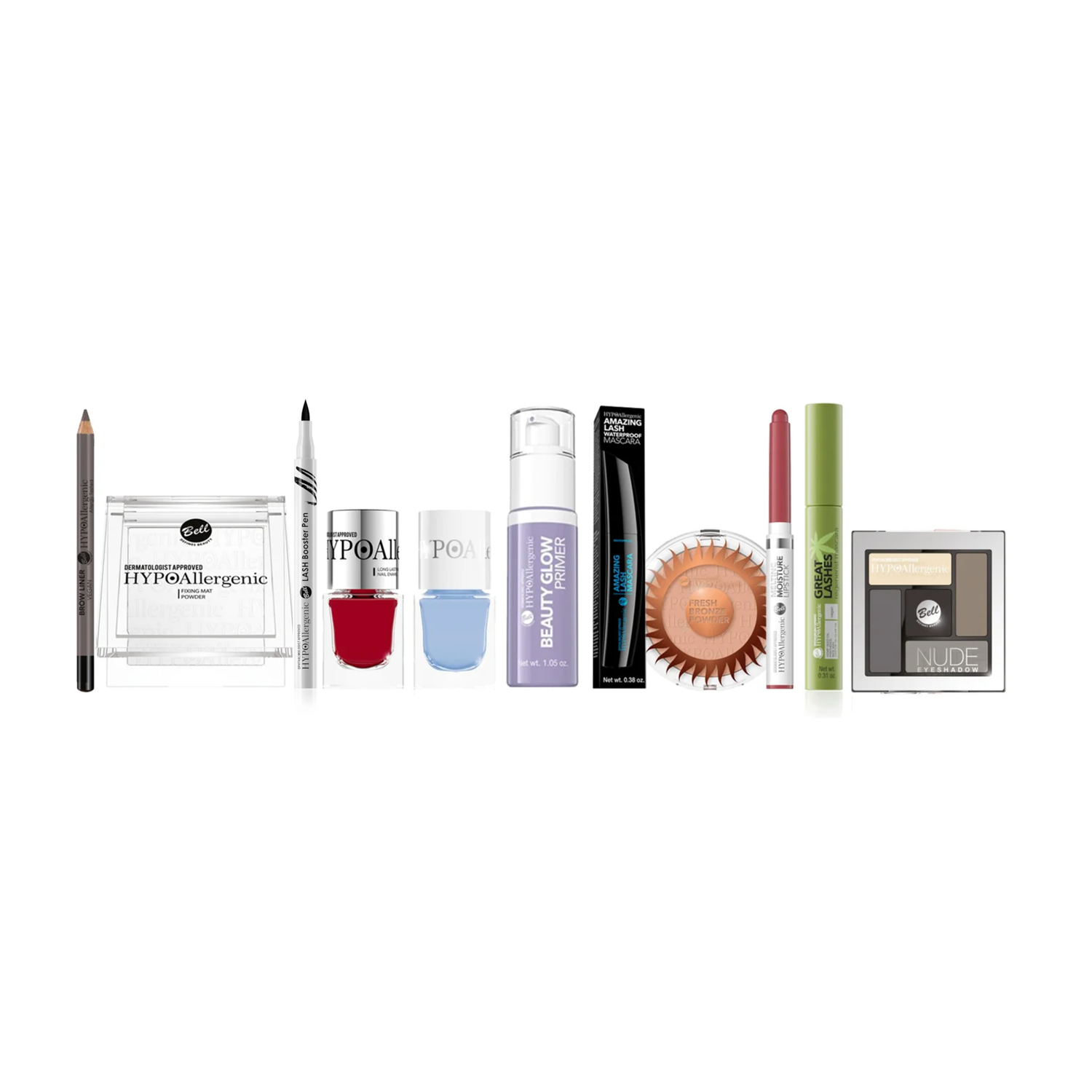 11teiliges Set bestehend aus<br /><br />Fixing Mat Powder<br />Lash Booster Pen<br />Long Lasting Nail Enamel 07<br />Long Lasting Nail Enamel 27<br />Beauty Glow Primer<br />Amazing Lash Waterproof<br />Fresh Bronze Powder<br />Melting Moisture Lipstick 03<br />Great Lashes Regenerist Mascara<br />Brow Liner 02<br />Nude Eyeshadow 02